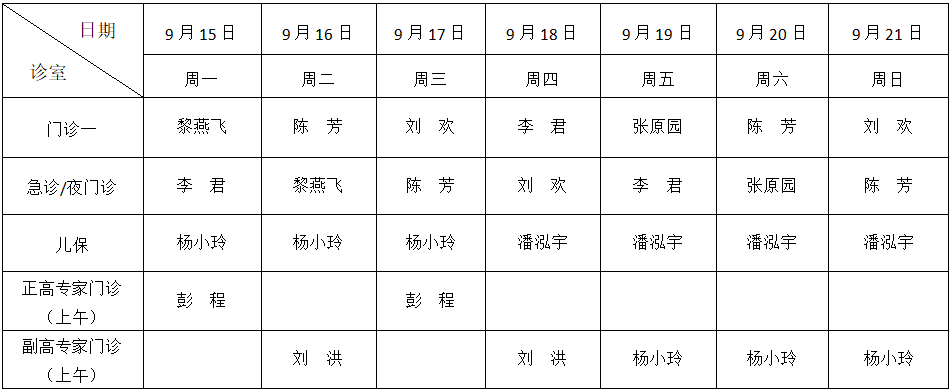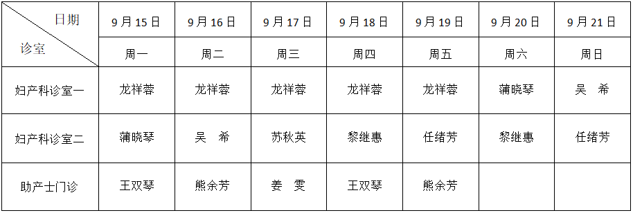 【便民服务】广安市妇幼保健院门诊医生排班表(9月15日-9月21日)